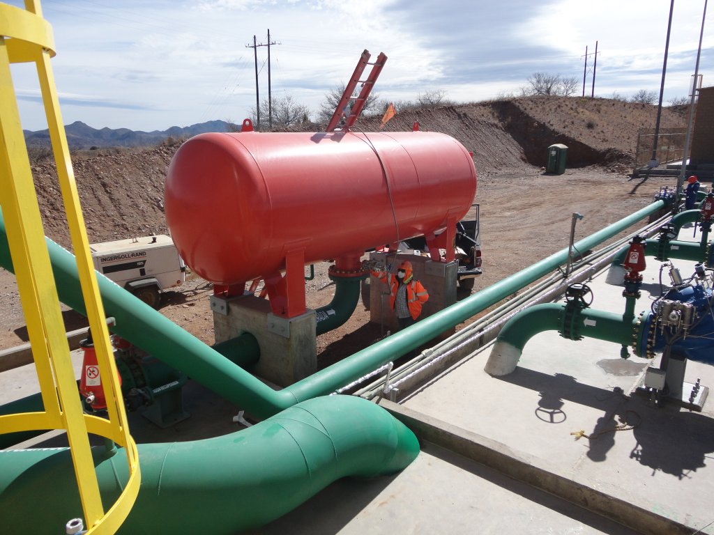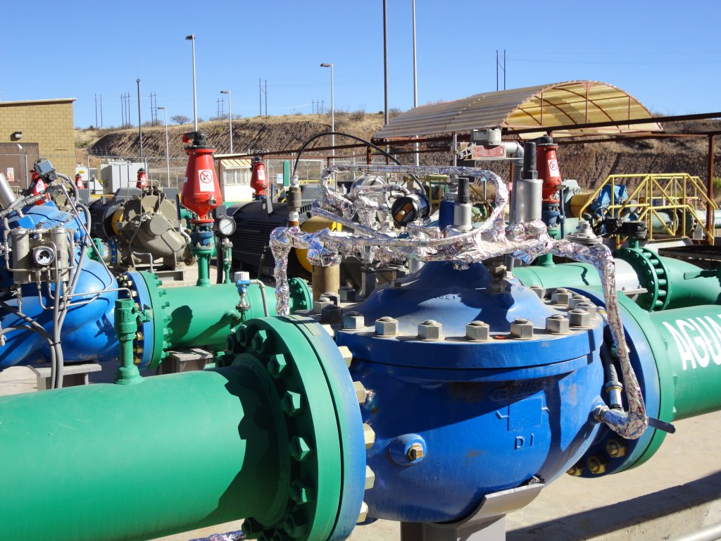 El bombeo de agua recuperada para proceso se lleva a cabo en cuatro estaciones de bombeo. Se ha implementado un incremento de eficiencia en el bombeo y la línea de conducción. Además, se ha instalado una protección de transitorios hidráulicos en las cuatro estaciones de bombeo y válvulas de admisión y expulsión de aire para fluidos con sólidos en la tubería de 36 pulgadas.
